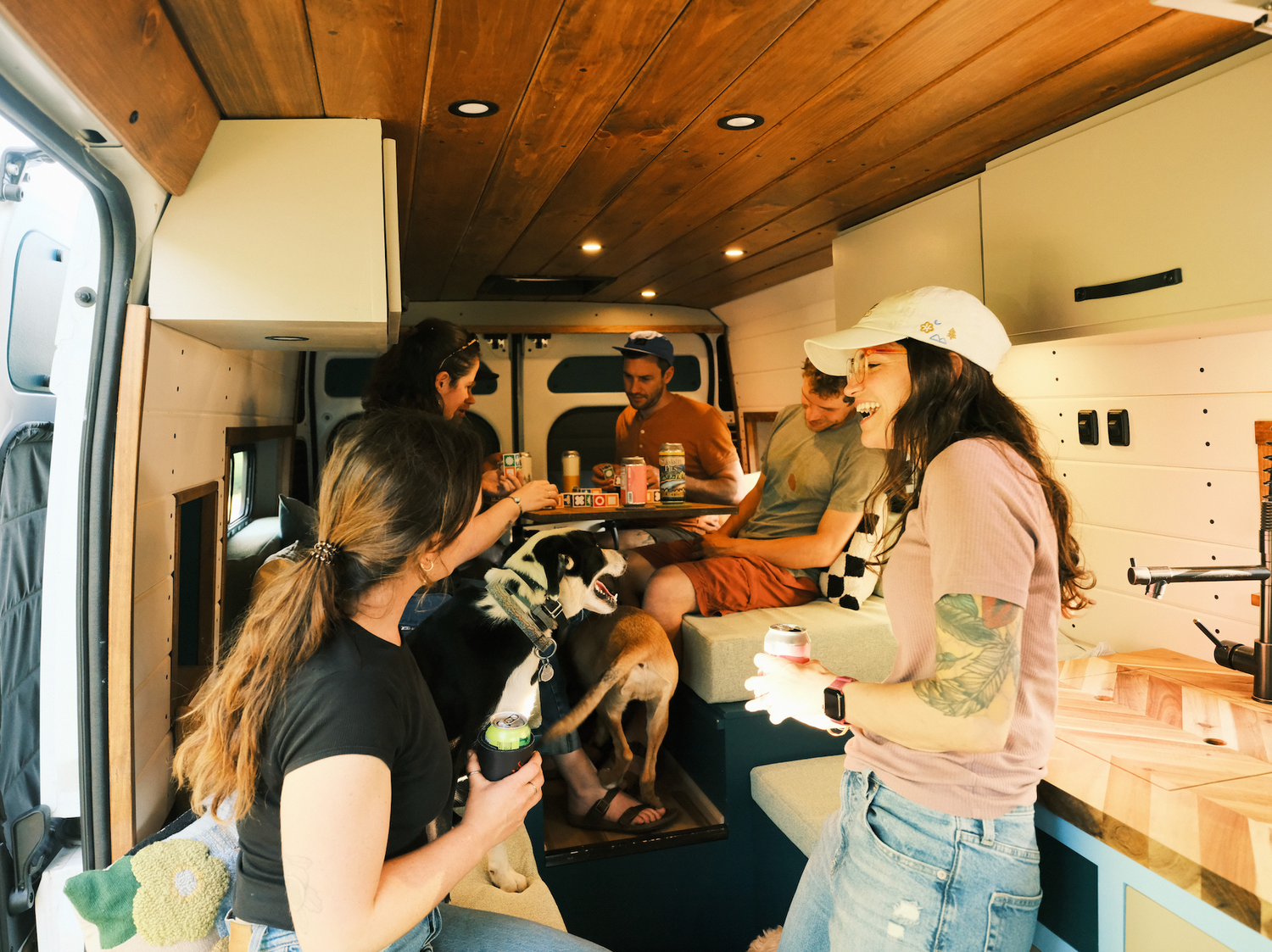Our vans have all of the amenities you'll need for a comfortable and functional basecamp in the mountains, and beyond! We're dog friendly too!